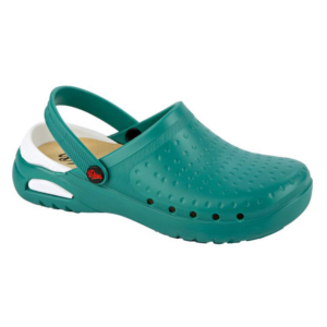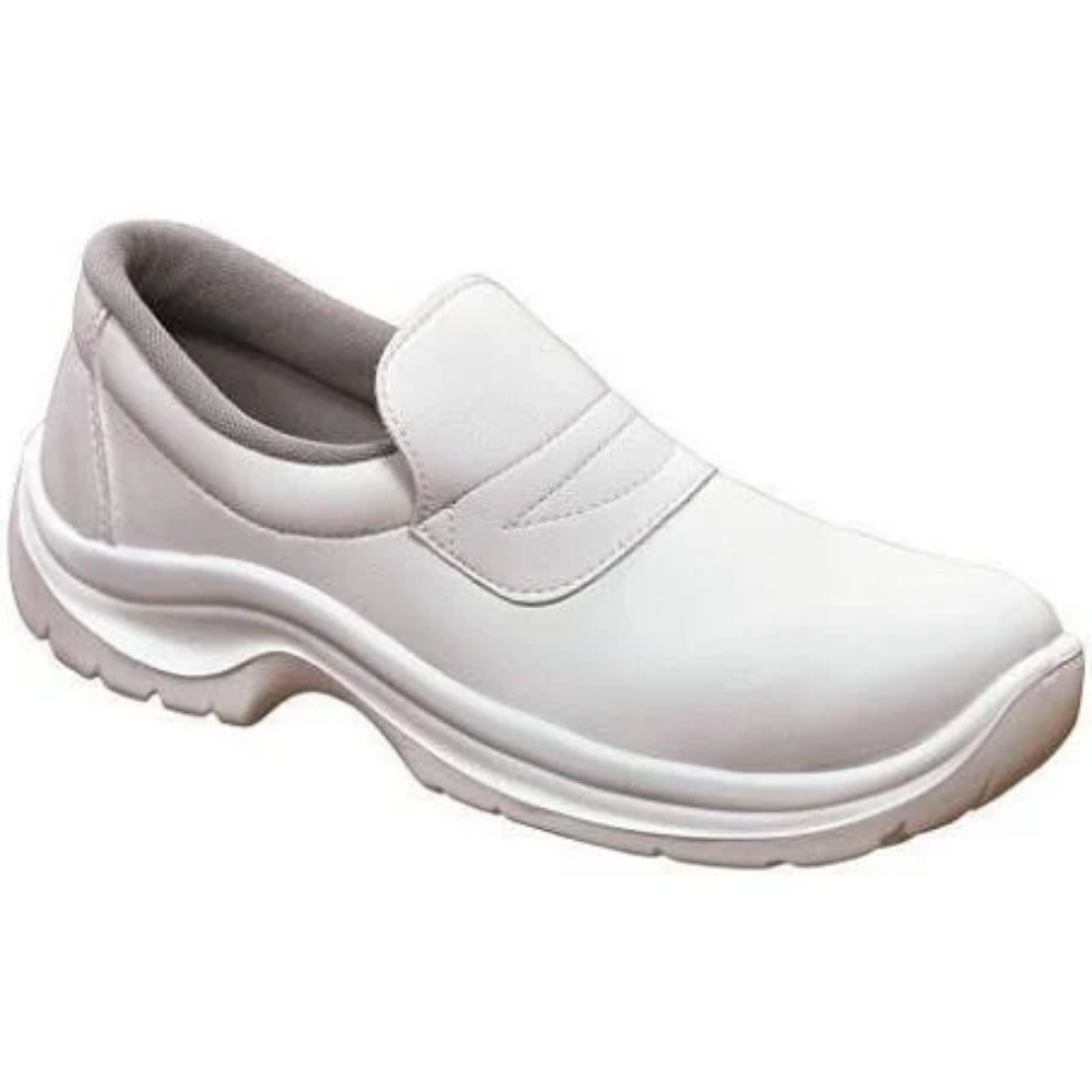 Zapato con puntera de seguridad ajustable con elástico, pala de microfibra forrada interiormente, altamente TRANSPIRABLE con gran capacidad de absorción de humedad y rápido secado. Horma recta de puntera redondeada. Contrafuerte de dureza suficiente para sujetar el calcáneo. Plantilla de tejido sobre espuma de poliuretano. Suela de poliuretano antideslizante de gran coeficiente en seco y húmedo, con resaltes acanalados en la suela para facilitar la evacuación de líquidos.